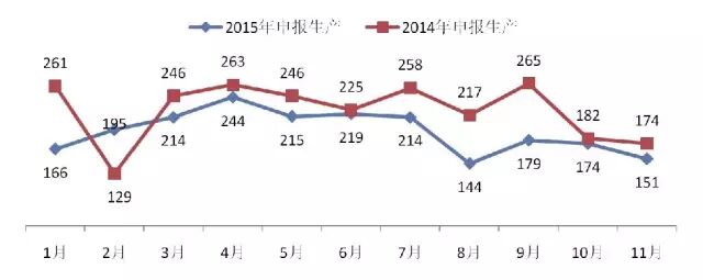 临床申报受影响较大从申报临床和申报生产的受理情况来看,系列新政出台后,2015年申报临床和申报生产的受理量与2014年相比均出现不同程度下滑。受药物临床试验数据自查核查的影响,申报临床的受理号从7月份的394个大幅下滑到8月份的214个,下滑幅度达45%。8-11月,申报临床的受理号一直维持在170~240个之间。而申报生产的受理号数量虽在8月份出现下滑, 但整体上并没有出现大幅变动。可见临床申报方面受政策影响较大。